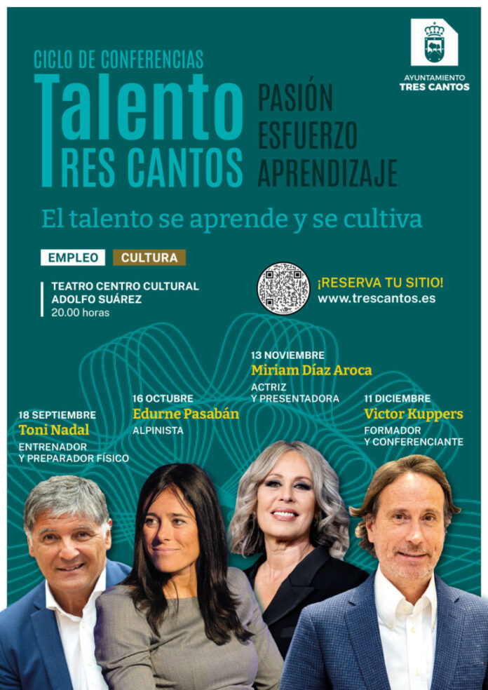 El Ayuntamiento de Tres Cantos, a través de la Concejalía de Desarrollo Económico y Empleo y en colaboración con la Concejalía de Cultura, lanza el ciclo de conferencias ‘Talento Tres Cantos’. Una iniciativa dirigida a todos los públicos, con el propósito de ofrecer un espacio para la inspiración, la motivación y la superación personal de la mano de destacados referentes nacionales.