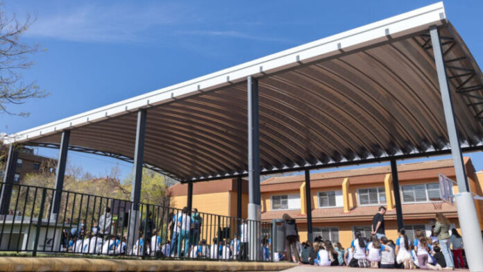 CEIP Miguel de Cervantes ha inaugurado su nueva cubierta, denominada ‘El paraguas’, nombre elegido por los propios alumnos del centro. Se trata de una infraestructura muy esperada tanto por los estudiantes como por el personal docente, ya que permitirá mejorar significativamente el uso de los espacios exteriores del colegio –especialmente, ante las inclemencias meteorológicas, así como en los episodios de lluvias o temperaturas extremas ocasionados durante el año–.