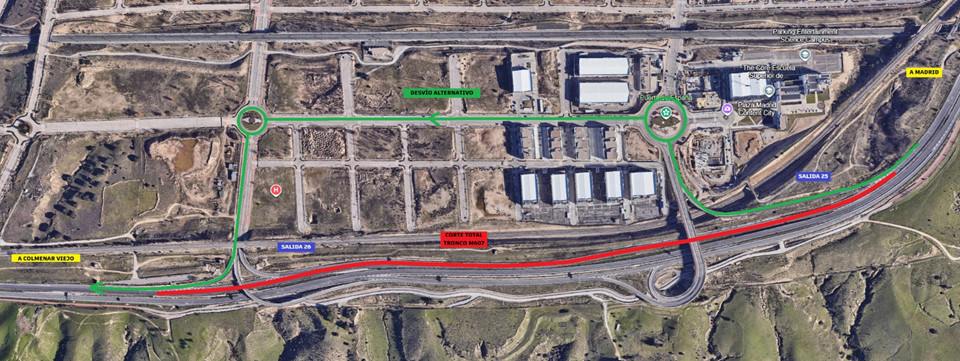 Con motivo de los trabajos de asfaltado incluidos en el proyecto del Tercer Carril de la M‑607, durante la noche del lunes 27 se ejecutará un corte total del tronco de la carretera en sentido Colmenar, necesario para intervenir en el tramo comprendido entre los puntos kilométricos 25+500 y 26+900. La restricción afectará a la circulación durante la franja nocturna prevista por la Dirección General de Carreteras de la Comunidad de Madrid, que ha establecido un itinerario alternativo mientras se desarrollan las labores de asfaltado.