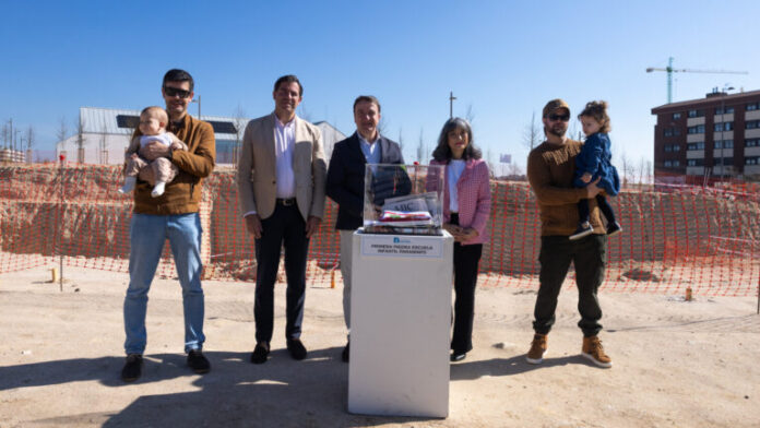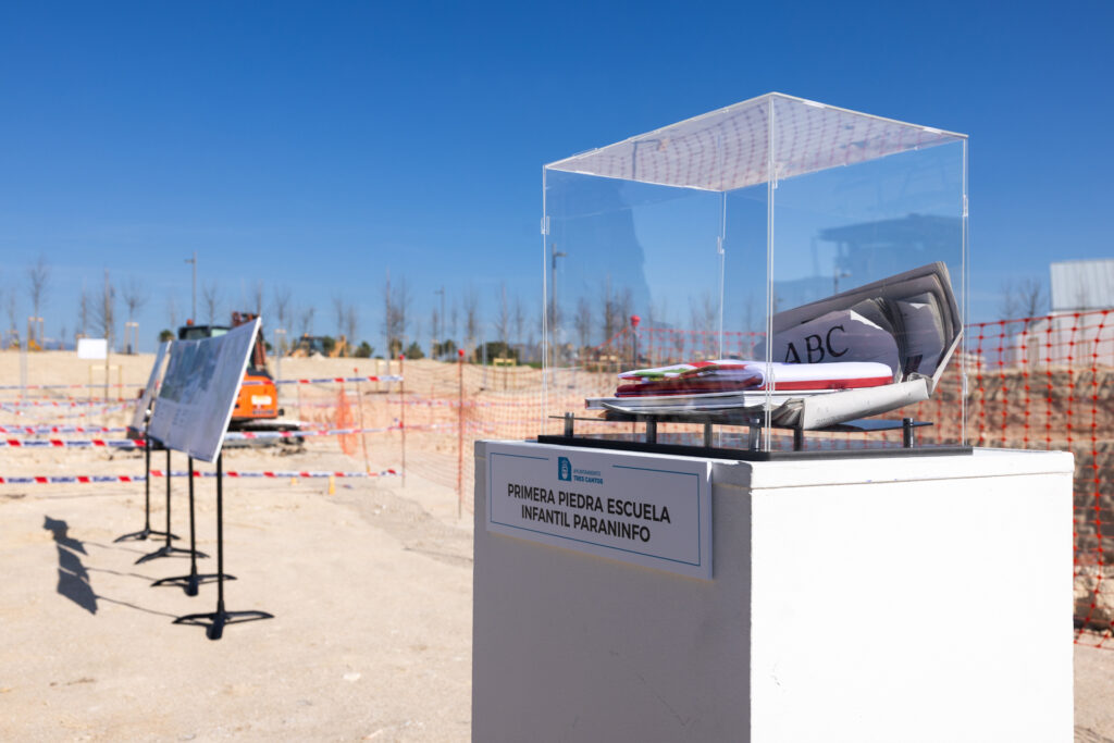Ayuntamiento de Tres Cantos ha dado esta mañana un nuevo y significativo paso en el fortalecimiento de la excelencia educativa de la ciudad, con la colocación de la primera piedra de la Escuela Infantil Paraninfo. El acto ha estado presidido por el alcalde, Jesús Moreno, acompañado por el concejal de Presidencia, Javier Juárez, y la concejal de Educación, Marisa Peña.