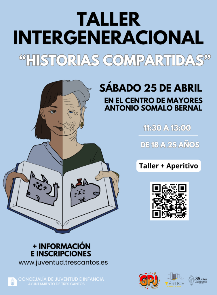 El taller tendrá 10 plazas para jóvenes y 10 plazas para mayores. Si tienes entre 18 y 25 años y estás interesado/a, puedes apuntarte tanto en el enlace de abajo como en el QR.